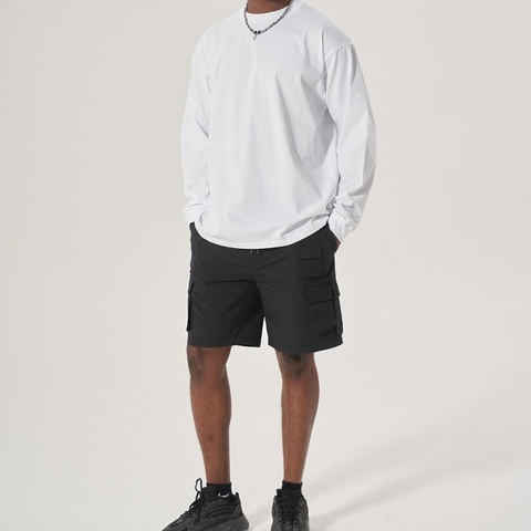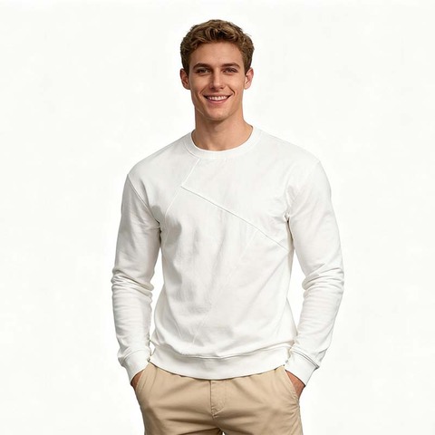 Camiseta de manga larga de algodón de alta calidad para hombre con bolsillo Camiseta personalizada de diseño en blanco holgado informal de moda